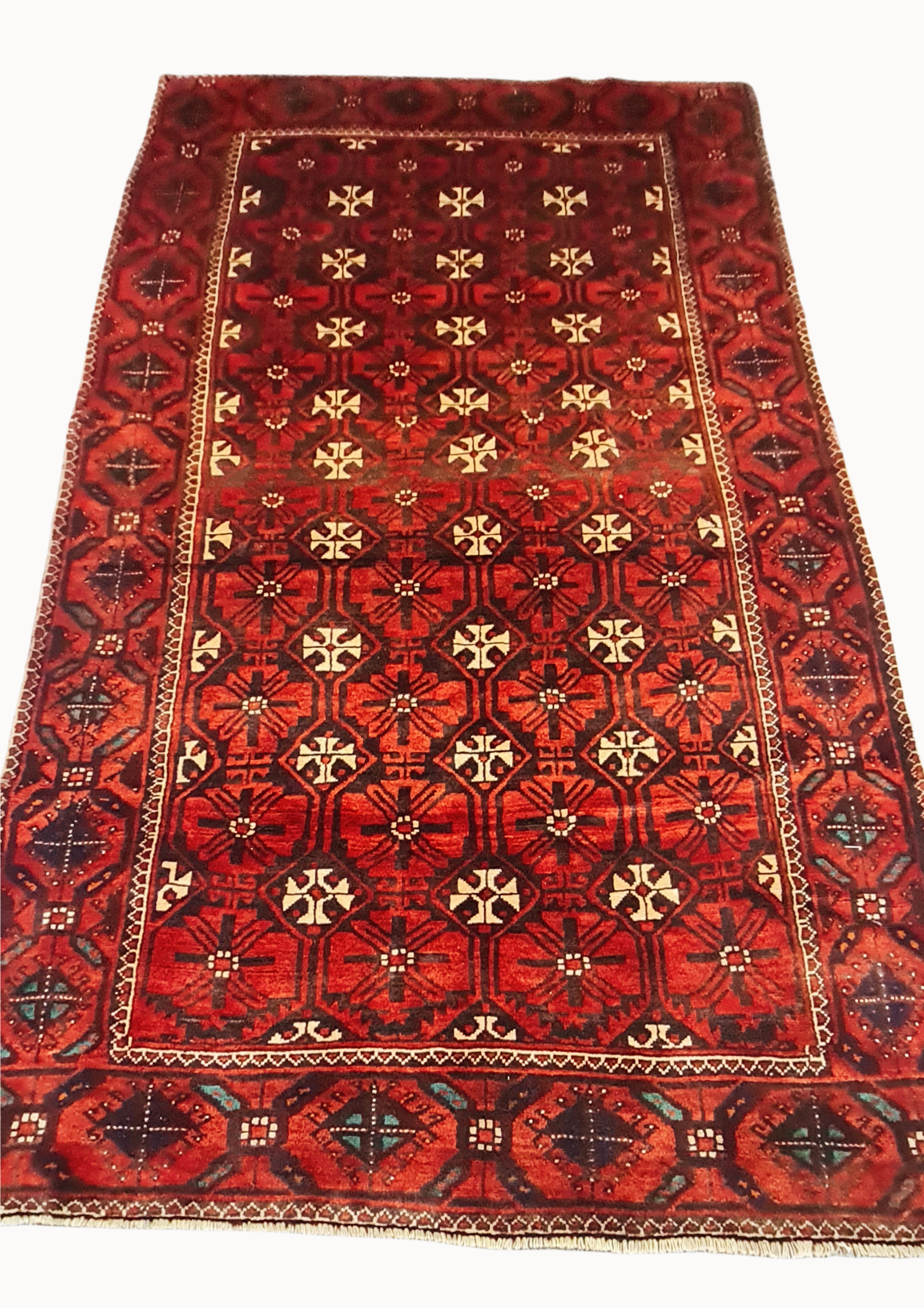 Sistan and Baluchestan province is located in the southeast of Iran. Nomadic background of Baluchi rugs which were woven for use over mats on soft earth in or near tents. They normally have wonderful orange, green and yellow with deeper red and blue colours.
