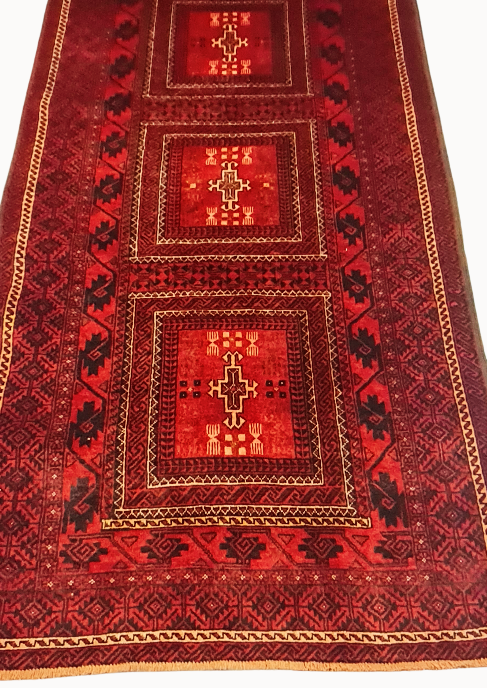 Sistan and Baluchestan province is located in the southeast of Iran. Nomadic background of Baluchi rugs which were woven for use over mats on soft earth in or near tents. They normally have wonderful orange, green and yellow with deeper red and blue colours