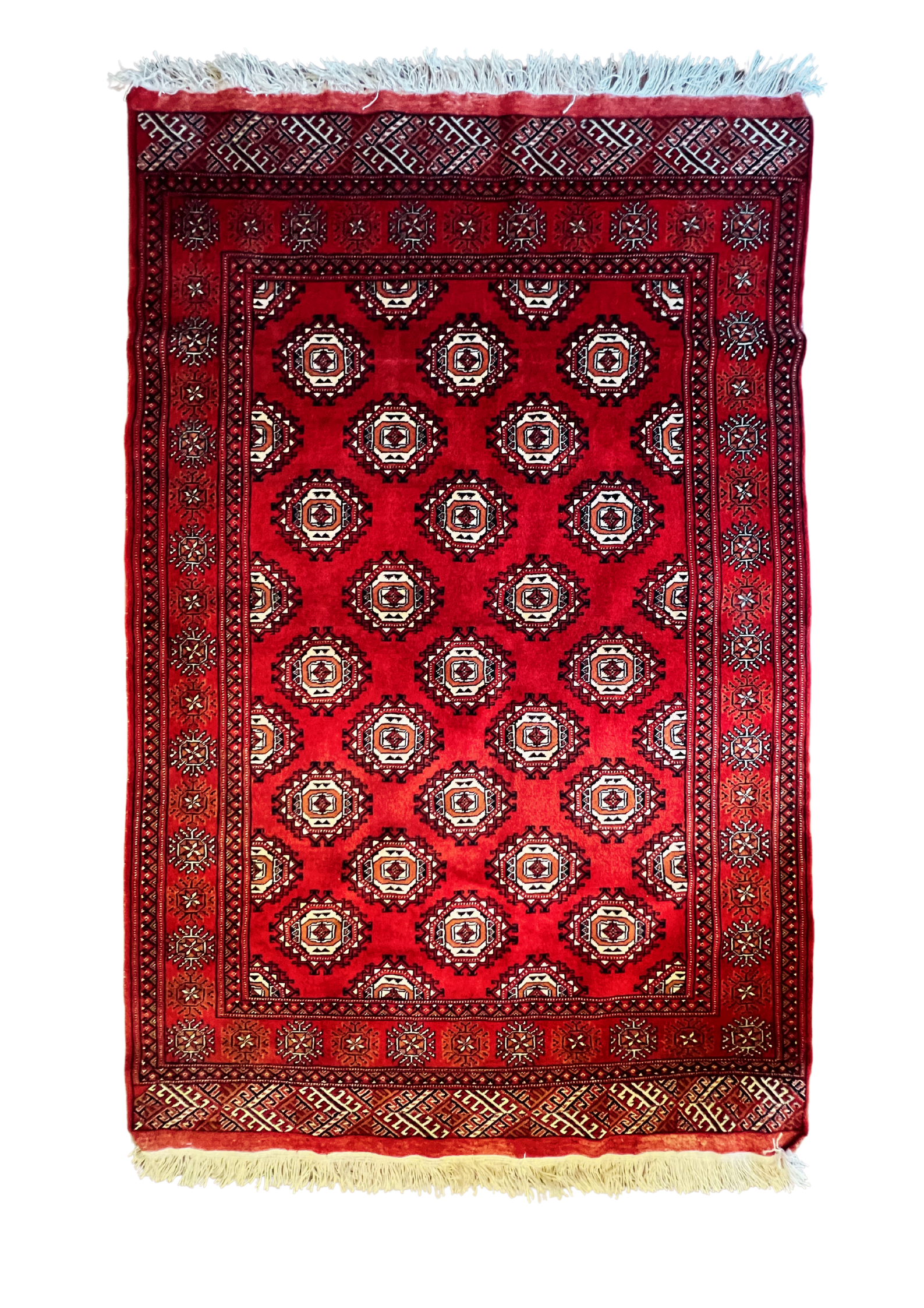 Torkaman carpets were originally nomadic tribes with a population of around half a million, but they are now mostly settled in the Mazandaran province in the north of Iran. Typically, the patterns are geometrical flowers and octagonal patterns with variations according to tribe.