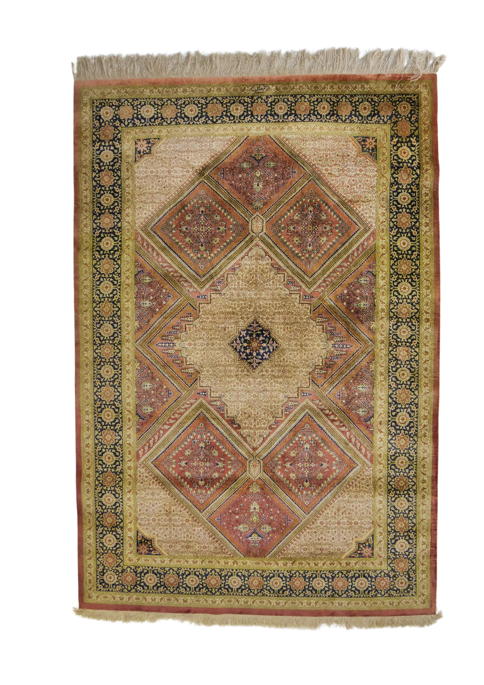 The city of Qume (of Ghom) is located around 150 km south west of Tehran. It is famous for the elaborate designs and high quality craftsmanship using top quality wool and silk
