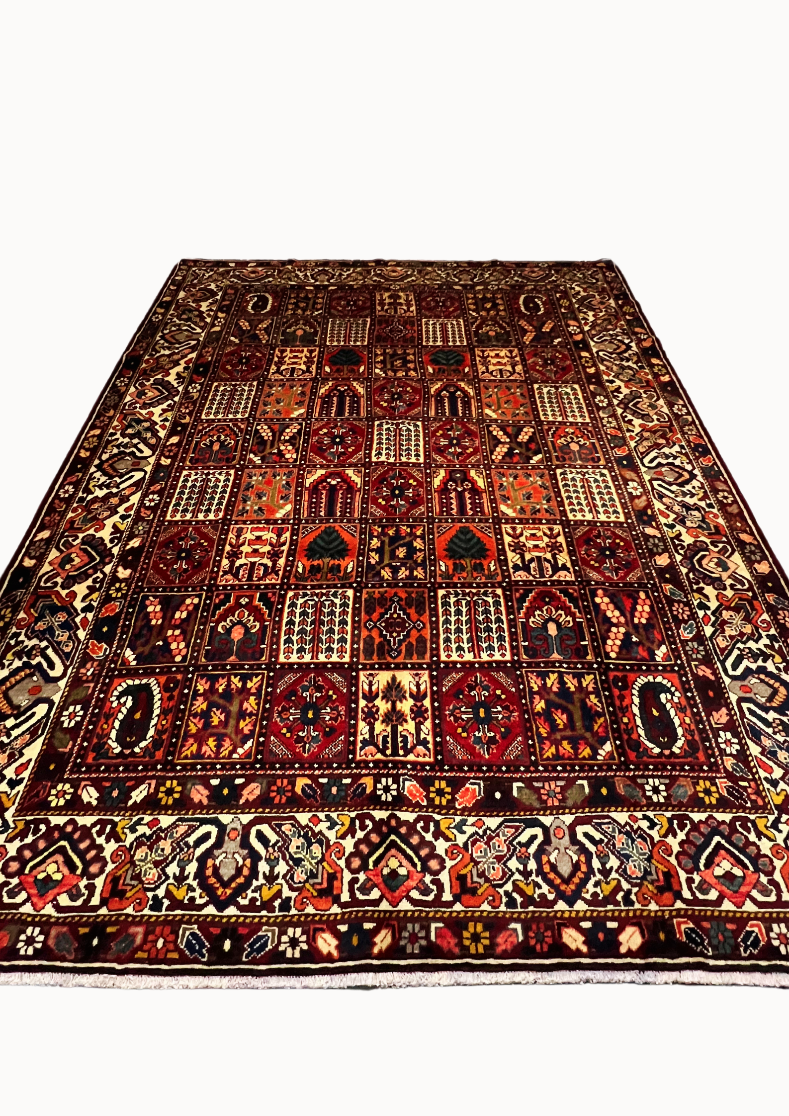 Bakhtiari carpets are woven by nomads living in Chaharmahal who live around the Zagros mountains in West Iran. Quality wool and distinctive bold colours both tribal and classic medallion designs and are highly durable carpets.