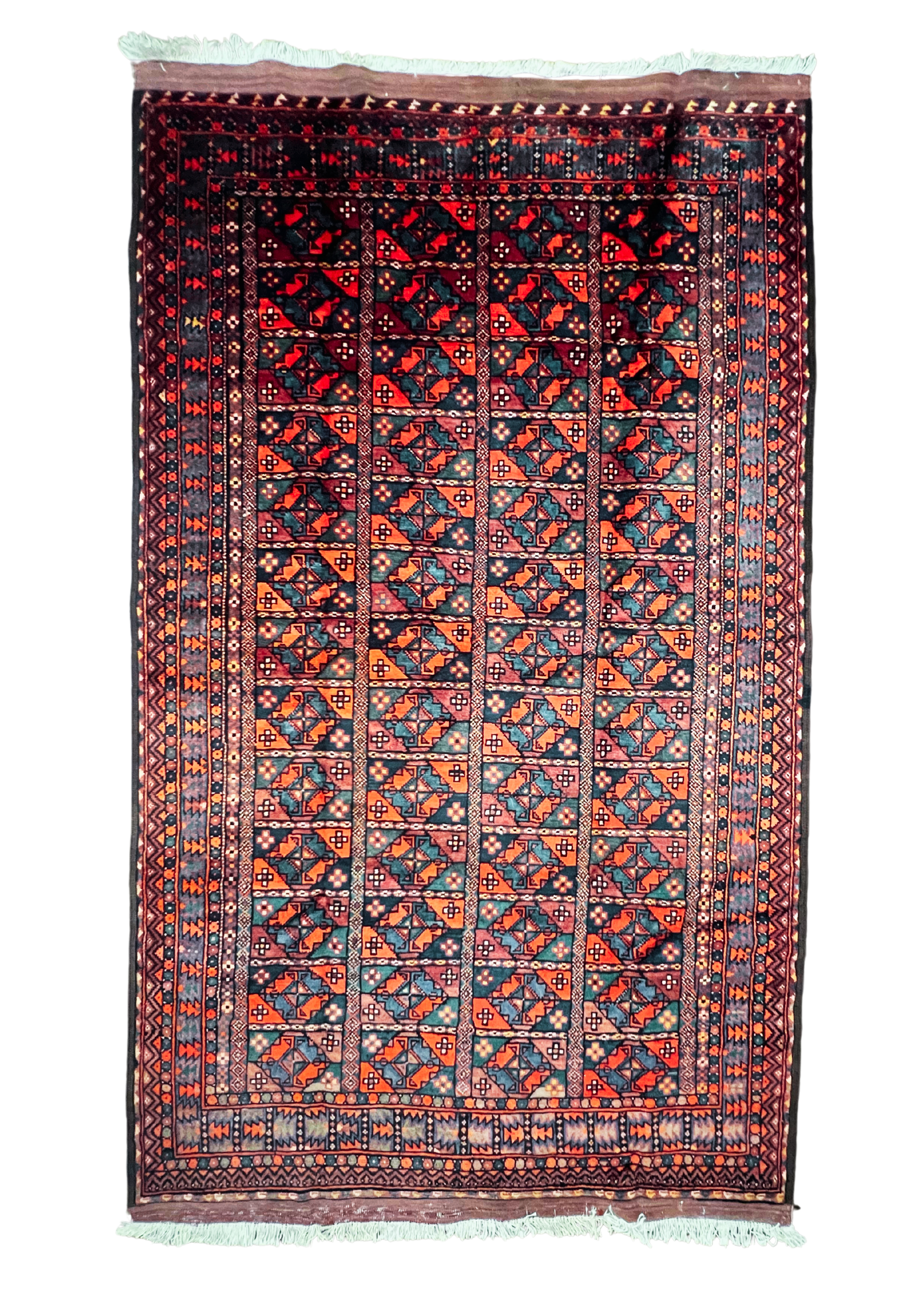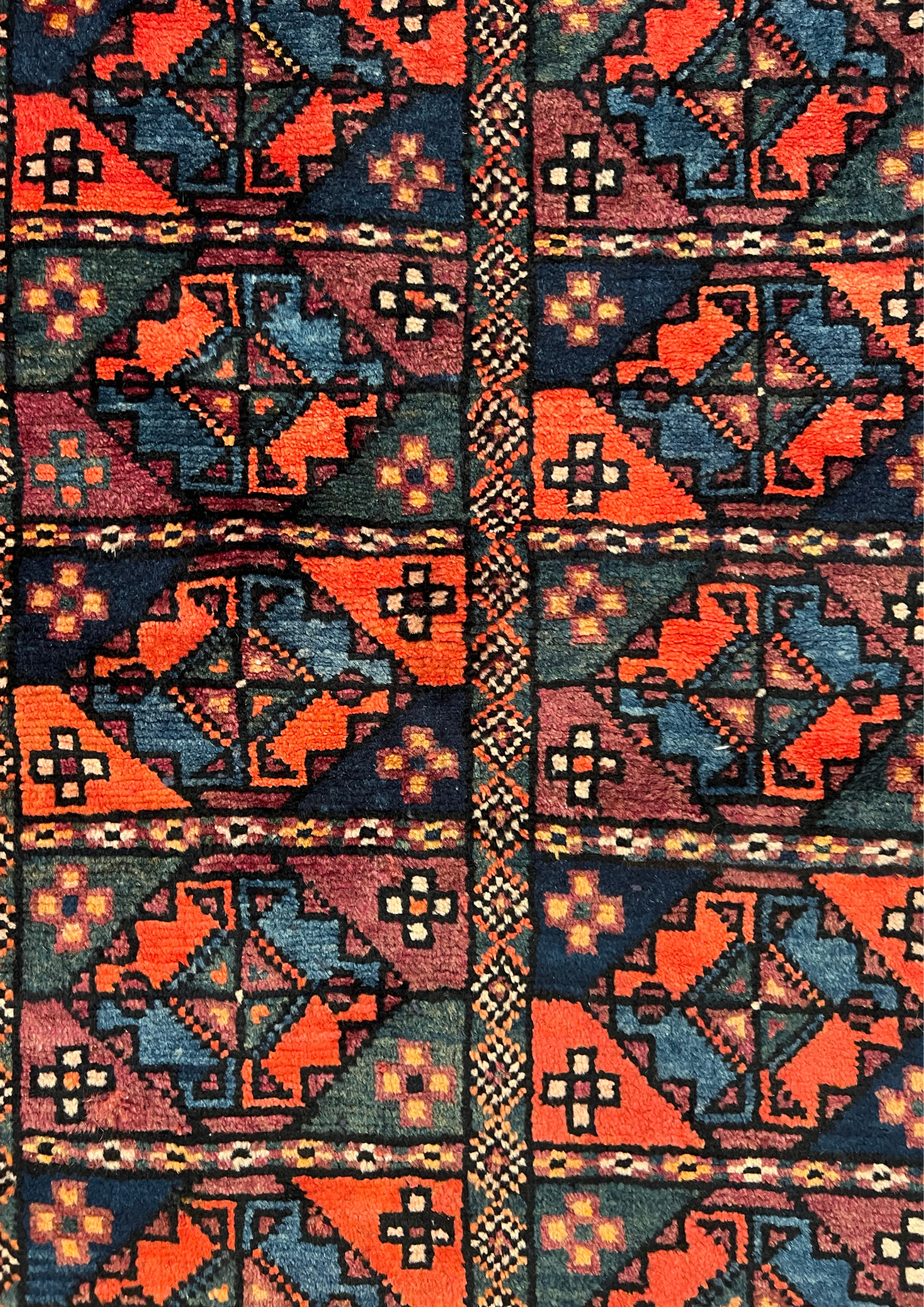 Sistan and Baluchestan province is located in the southeast of Iran. Nomadic background of Baluchi rugs which were woven for use over mats on soft earth in or near tents. They normally have wonderful orange, green and yellow with deeper red and blue colours.