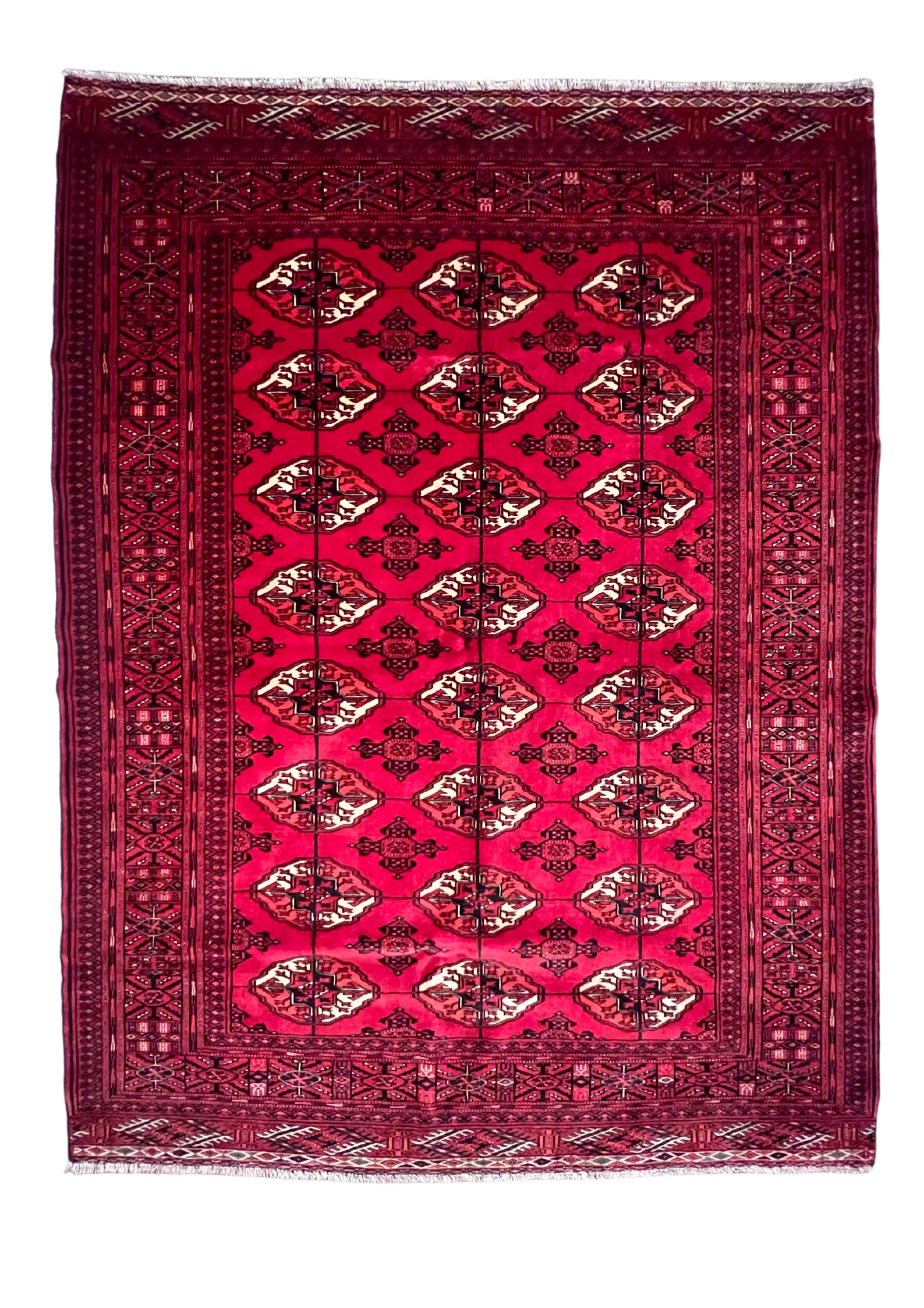 Torkamans were originally nomadic tribes with a population of around half a million but are now mostly settled in the Mazandaran province in the north of Iran. Typically the patterns are geometrical flowers and octagonal patterns with variations according to tribe.